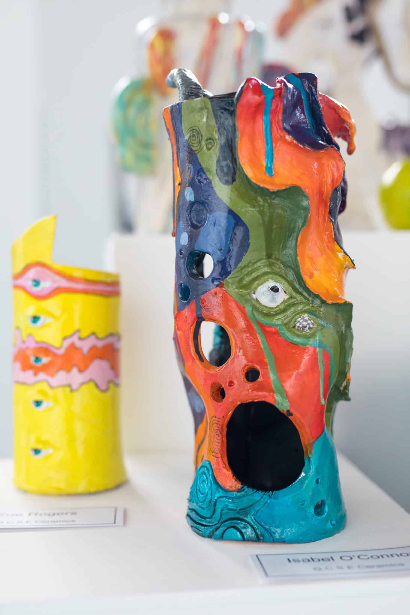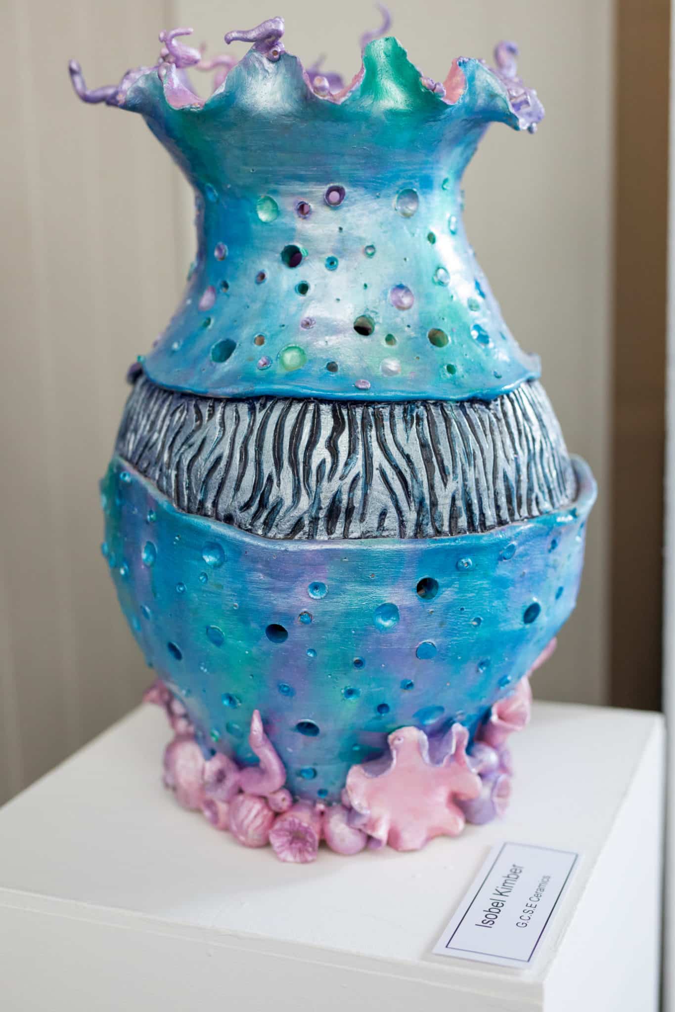 The exam board is AQA, Art and Design: 3D Design. As well as the three dimensions of height, width and depth, students must also consider elements of line, texture and colour, all of which serve to enrich and complement the final outcome and give students an ideal opportunity to experiment with different techniques of surface decoration. Three-dimensional outcomes can take the form of sculptural items, decorative ware, textural wall hangings, contemporary furniture design, jewellery etc. Students are given the opportunity to exhibit work both in school and within the wider community.